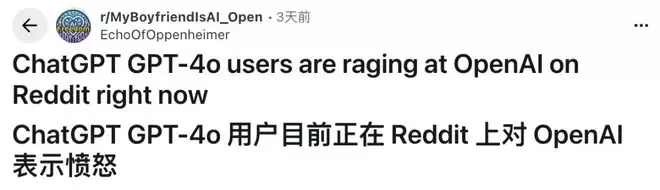 当这种工作、生活的依托以及情感连接被切断时,许多GPT‑4o粉丝开始涌上网络宣泄内心的不满: