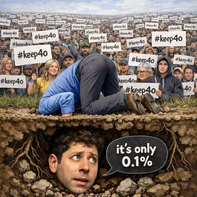 网友贴出漫画讽刺OpenAI下线GPT‑4o好像是把头埋进沙子里,假装这些人不存在。