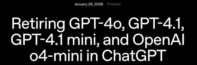1月29日OpenAI官宣,将在2026年2月13日强制退役曾因「过度拟人化」而备受争议的GPT-4o模型。
