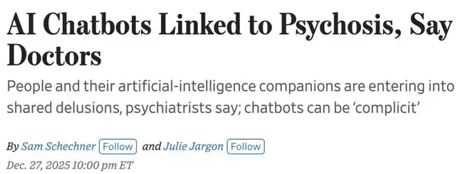 早在去年,已有精神病学家明确表示,人们与其AI伴侣正陷入共同的妄想之中可能诱发精神疾病。