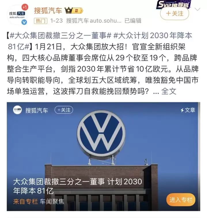 图/大众集团拟裁撤三分之一董事 来源/搜狐汽车 新能源观截图