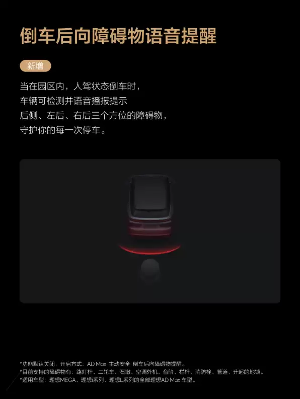 交互方面,VLA智驾大模型新增支持通过语音保存常用车位。用户只需下达类似“记住这个车位是电梯口车位”的语音指令,即可对特定车位进行收藏保存。新增的倒车后方障碍物语音提醒功能,在驾驶员手动倒车时,车辆能通过后视摄像头检测潜在的后方碰撞风险,并通过“理想同学”进行语音播报提示。此外,OTA 8.3还新增了传感器脏污情况交互提醒,以及车速、车道记忆管理等页面功能,大幅提升了用户用车的便捷性与安全性。
