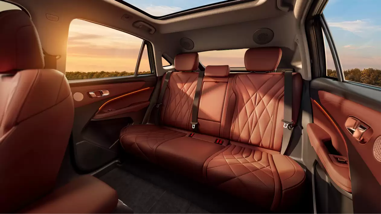 座舱聚焦主副驾双人舒适体验,搭载“尊享主驾+同级唯一女王副驾”组合。主副驾均支持座椅加热、坐靠双通风,8点腰背按摩,打造出超凡舒享的前排舒适大沙发。后排座椅放倒秒变1.93米大床,配合1.5㎡超大尺寸全景天幕,轻松切换休憩、露营等多元场景。