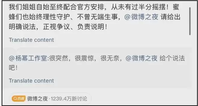 看懂了吗?虽然字数很多,但意思还是那个意思,终究是打工人背下所有,最大的信息点就是“微博之夜否认杨幂抢位”,同时又坐实了杨幂不是C位。