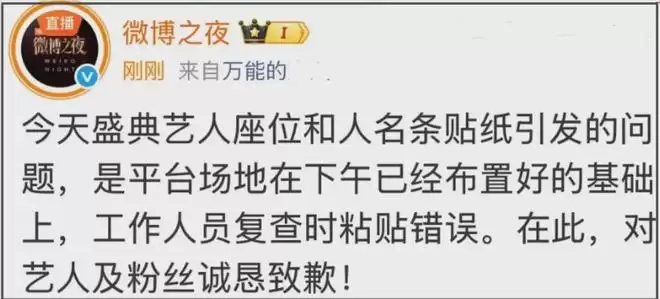 微博之夜活动开始,工作人员发现错误,第一时间予以纠正。