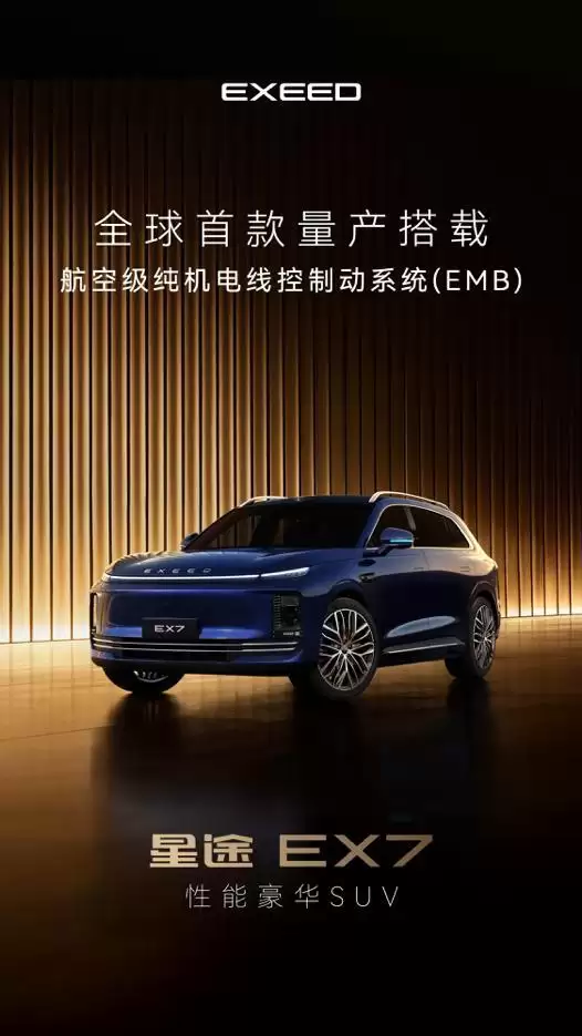 网易汽车2月8日报道近日,星途汽车最新宣布,品牌3 0时代中大型SUV星途EX7,将于2026年第一季度正式发布。该车最大亮点为全球首款量产搭载纯机电线控制动系统(EMB)的车型,该