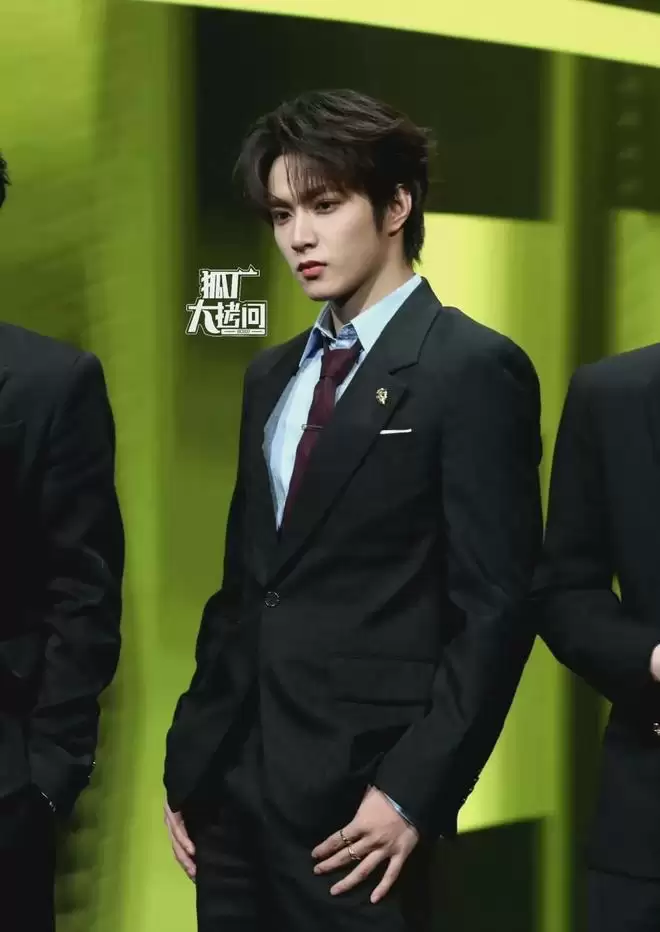 肖战穿一身紫红色西装,贵气感直接拉满,站在那儿就像小说里走出来的豪门贵公子。