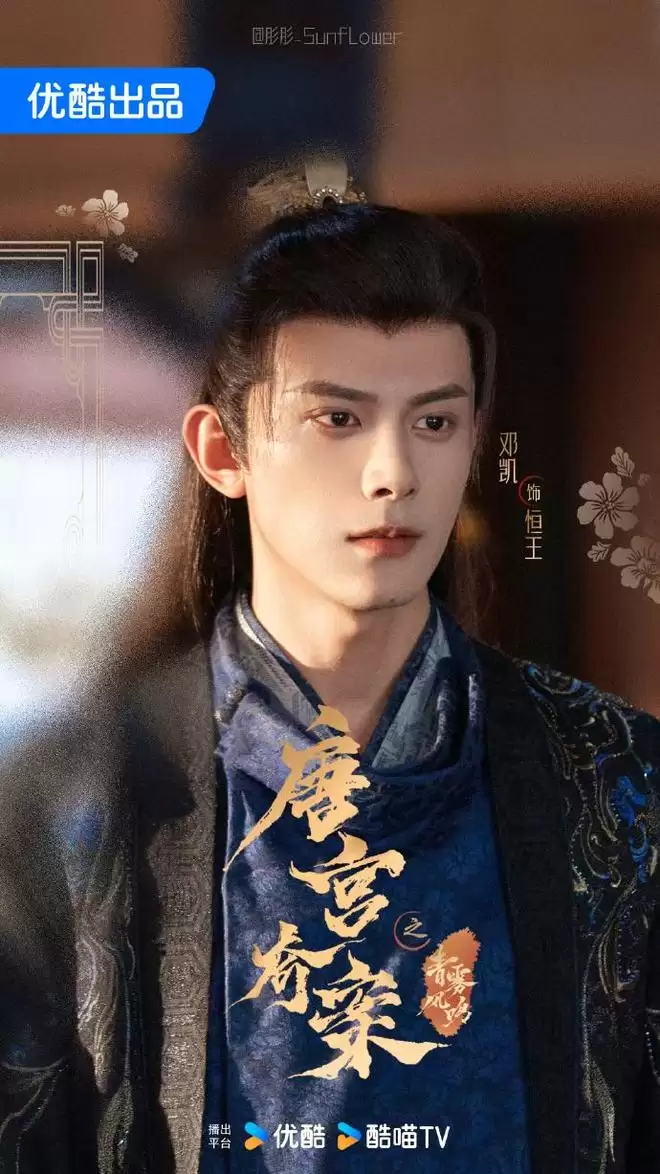 邓凯在《少年歌行》扮演赤王萧羽,作为北离七皇子,与无心同母异父,并拜剑客洛青阳为义父。在皇位争夺战中,他与萧瑟、萧崇展开激烈斗争,最终因算计败露而选择自杀身亡。《唐宫奇案》又是皇室子弟,扮演恒王。