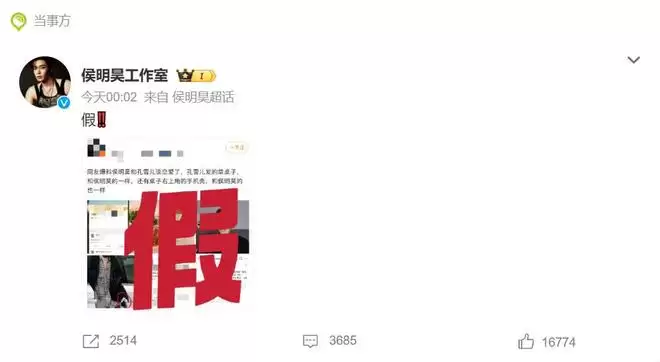 然而,粉丝和网友还没开始“扒糖”,正主方的“打假铁锤”就砸了下来。2月9日零点刚过,侯明昊工作室率先出击,用一个大写的“假‼️”字和一纸声明,干脆利落地否认了所有传闻。仅仅10分钟后,孔雪儿工作室的辟谣声明也同步抵达“战场”,不仅盖章“纯属造谣”,更直接点明双方“无交集”,彻底斩断了传闻的联想空间。