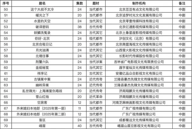 2026年1月全国拍摄制作电视剧(网络剧)备案公示