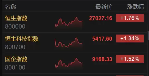 港股收评:恒指涨1.76%重返二万七,科技与金融股普升,AI概念股大涨