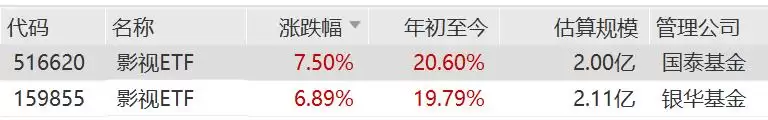 影视ETF跟踪的中证影视主题指数,覆盖了从电影、电视剧、网络剧的制作、发行、运营到院线等全产业链的50家上市公司。
