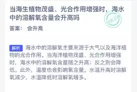 当海洋植物繁茂、光合作用增强时,海水中的溶解氧含量确实会升高。这是因为植物通过光合作用产生的氧气不断溶解到海水中。理解这一关系,有助于我们更好地认识海洋生态系统的平衡。