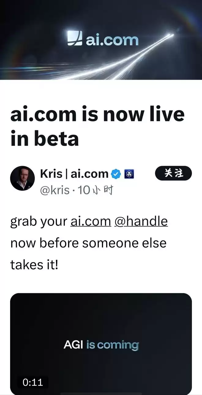 7000万美元交易!AI.com域名售予加密货币巨头,拟开发个人助手代理