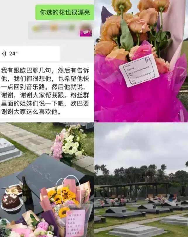 粉丝:我恰巧遇到独自守在墓前的欧巴,他真的超级伤心,整个墓地就他一个人坐在那里。我们去的时候他就已经坐了很很久,背影显得十分落寞。