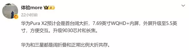 华为Pura X2再确认:7.69英寸大屏配麒麟9030,价格或有惊喜