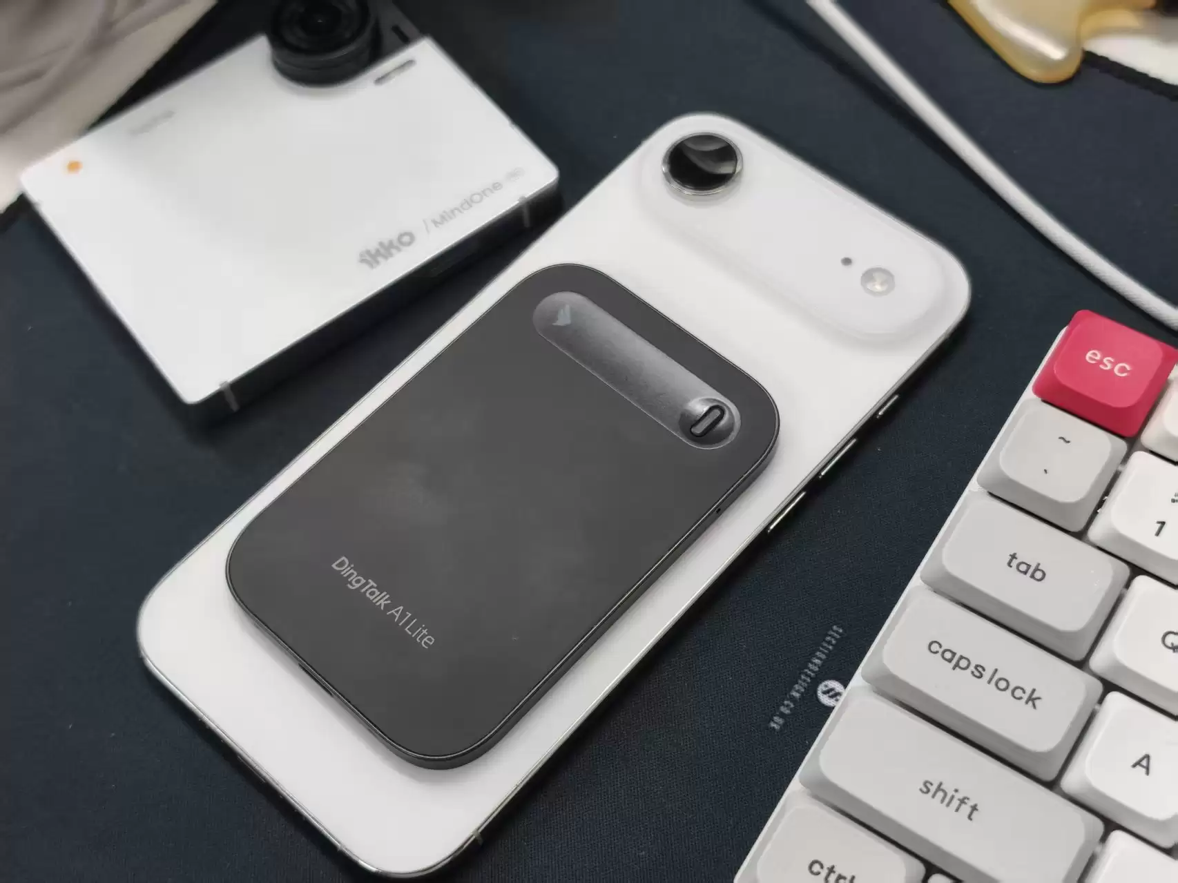 首先,和传统录音笔相比,钉钉 A1 录音卡非常轻巧。我买的是 Lite 版,重量仅有40克,尺寸比我的磁吸卡包还要小。以前用录音笔的时候偶尔还会忘记带出门,现在不管有没有安排,我都会直接把钉钉 A1 录音卡贴在手机上,真正做到随取随用。