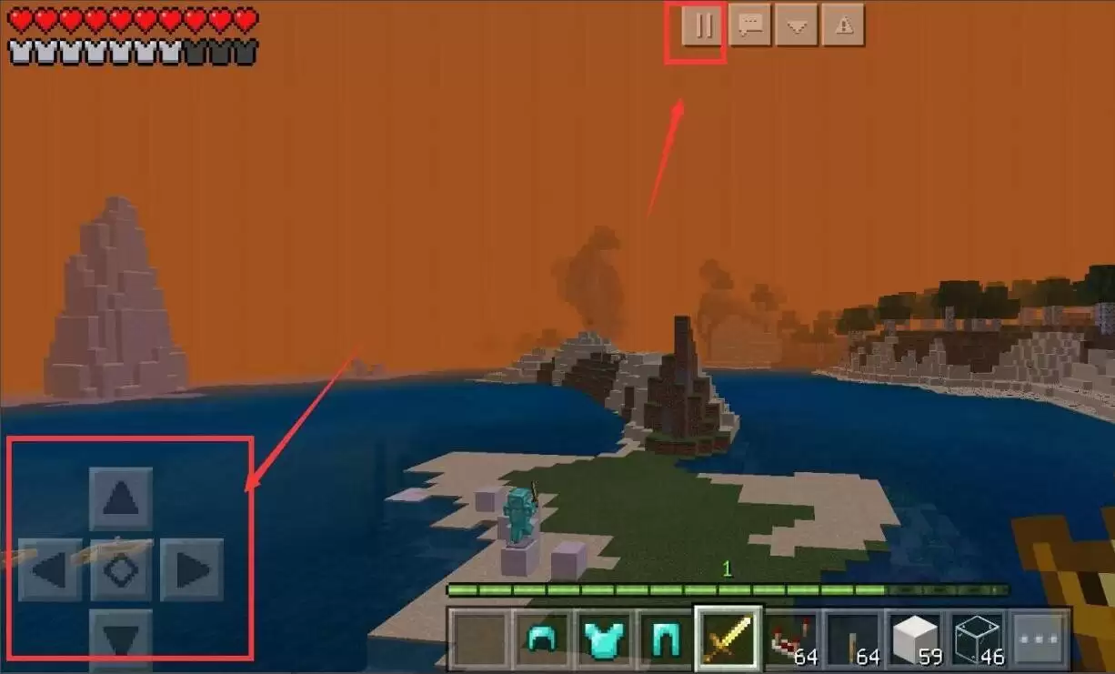打开《我的世界》并进入任意一局游戏。这时,你会发现方向键还是传统的十字形布局。接下来,点击屏幕上方的【暂停】按钮。