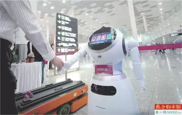 深圳机场问询机器人,可为旅客提供出行指引等服务。