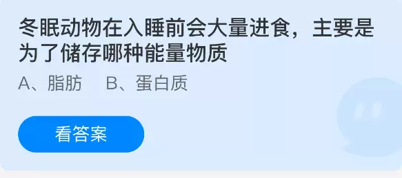 冬眠动物在入睡前会大量进食,主要是为了储备哪种能量物质?支付宝小鸡课堂开课啦!每天花一分钟答题赚饲料,喂喂小鸡就能贡献爱心啦!轻松又意义十足!2026年2月9日蚂蚁庄园的小鸡课堂题目正确答案是【脂肪】,冬眠动物在入睡前大量进食,主要是为了储存 脂肪 。