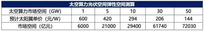 东吴证券研报对太空光伏的“远景”市场空间更为乐观。若未来每年发射1万颗卫星,低轨卫星光伏市场空间可达2177亿元;若未来太空算力市场空间达50GW,太空算力光伏市场空间可突破7万亿元。