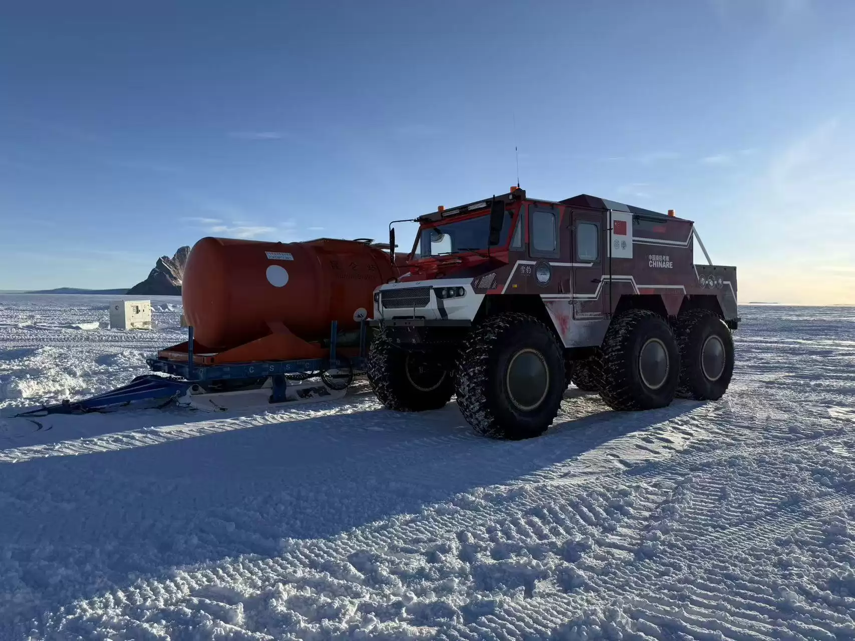 在冰雪覆盖的南极大陆腹地,一抹中国红正疾驰而过——这是我国自主研制的“雪豹”6×6轮式载具。