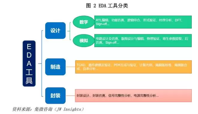 从工具分类来看,EDA行业呈现清晰的细分赛道布局。设计类EDA作为核心环节,进一步分为数字设计与模拟设计两大方向: