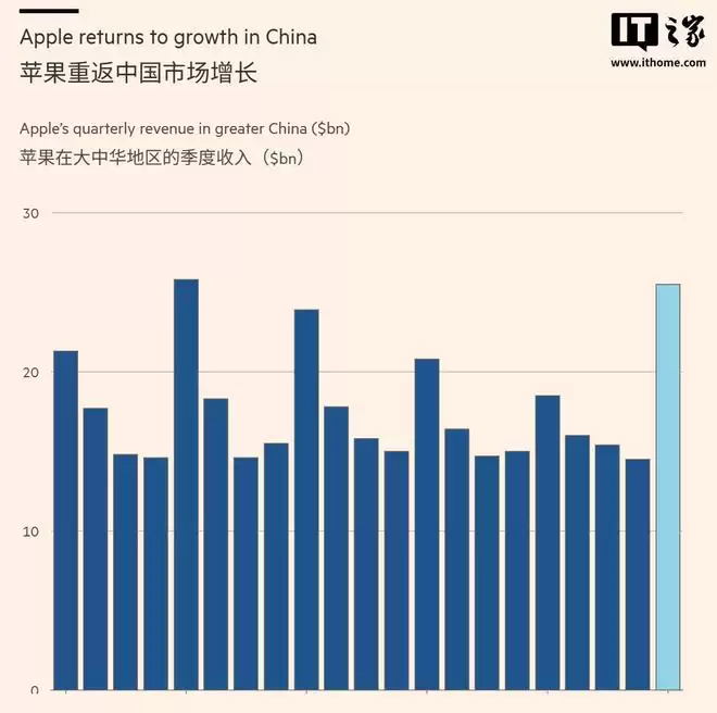 特别是在中国市场,iPhone销售额飙升至260亿美元,同比增长约38%;贡献了全球总销量的五分之一,成为本季度增长最为显著的地区之一。