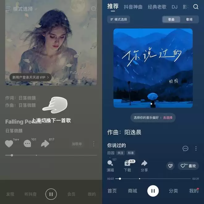 在界面设计上,汽水音乐界面极简,弱化评论与分享模块,强调"沉浸式听歌"体验,契合年轻用户对音乐私密性的需求;番茄音乐则强化社区互动,支持语音评论、点赞互动,并深度优化微信分享流程,用户可生成个性化卡片一键转发至家庭群、朋友圈,精准匹配下沉市场依赖熟人社交传播的行为习惯。