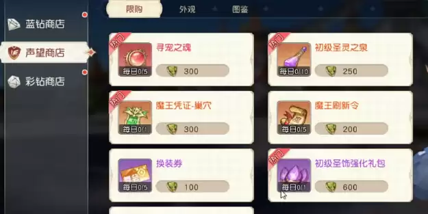 声望主要用于在声望商店中购买各类道具,除了常见的消耗品、材料外,还包括各种外观道具。值得一提的是,游戏中的外观往往附带有属性加成,所以对于玩家来说,积累声望也是提升战力的一个重要环节。