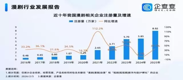图 2016年—2025年我国漫剧相关企业注册量及增速 来源:企查查