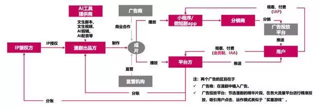 商业模式的多元化探索是AI漫剧可持续发展的关键。AI漫剧依托“IP矩阵+AI降本+平台分账”,形成应用内广告变现模式(IAA)、应用内购买模式(IAP)、混合模式(IAAP)和会员分账(通过用户浏览时长变现)四种变现路径。此外,IP衍生开发正在成为新的增长点,中文在线等头部企业已将漫剧创作全面迁移至自有AI漫剧生产平台,实现全流程高效协同。此外,定制化服务也是面向B端的重要商业模式。品牌方、出版机构、游戏公司等企业可以基于自身品牌调性或产品特点,定制专属的AI漫剧内容,实现精准营销或品牌IP打造。“漫剧带内容、漫剧带消费”等IP长期变现模式的效果显著。