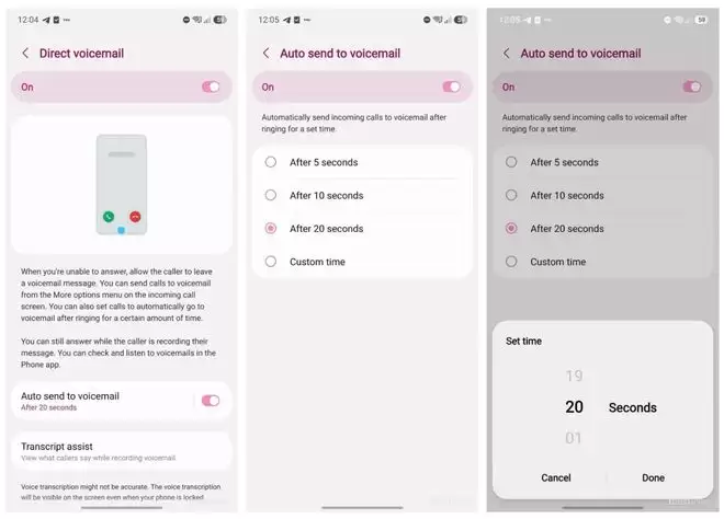 根据相关介绍,这次更新最大的亮点是引入了“直接语音信箱”功能。用户可以设置在特定时间段内,将所有来电自动转接至语音信箱。当对方留言时,系统会在三星电话应用界面实时生成并显示语音的文字转录内容,方便用户在无法接听时快速获取留言信息。