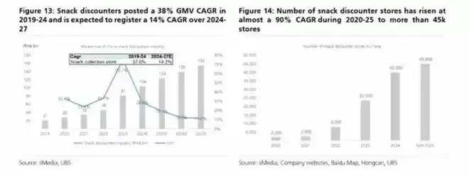据瑞银分析师预计,零食折扣店渠道的定价相较于传统大型连锁超市(KA)渠道可低25%。