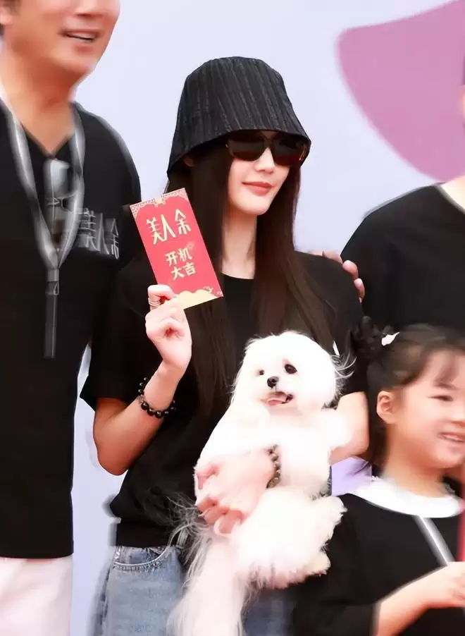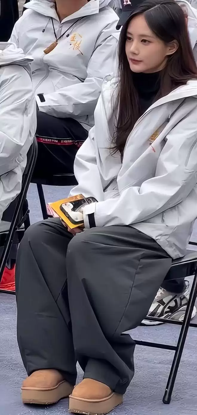 最显眼的是她下身的裤子,是条特别肥大的休闲裤,裤腿宽松得能装下两条腿,走起路来晃晃悠悠的,完全不像其他女明星开机时那样追求修身显身材。