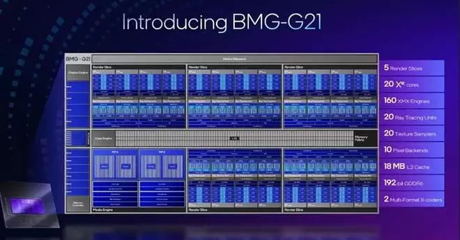 每颗BMG-G21 GPU可提供12.28 TFLOPS的FP32浮点性能以及197 TOPS的INT8 AI性能。