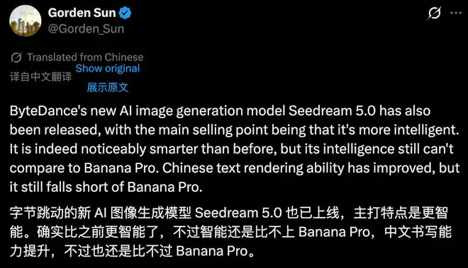 有网友认为,Seedream 5.0的智能水平、中文能力有提升,但都比不上Nano Banana Pro。