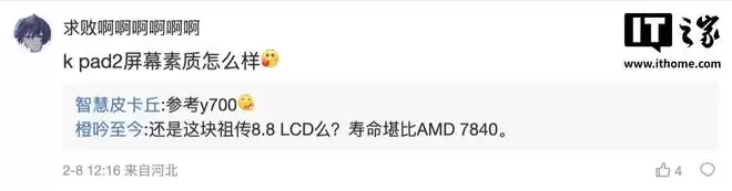 随后有用户在评论区询问:“k pad2 屏幕素质怎么样”,博主回应称:“参考 y700”。另一位用户则追问:“K Pad 的黑边和屏幕有优化吗”,博主表示:“等 oled”;此外还有网友提到:“小米阔折叠咋样”,博主则回复:“还早”。