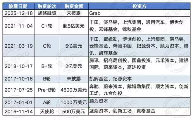 Momenta背后的投资人团队阵容强大:蓝湖资本、创新工场、真格基金为其天使投资人;顺为资本、纪源资本、淡马锡、腾讯等多次加注;丰田、上汽、通用、奔驰、蔚来等车企相继助力其发展。具体融资情况如下:
