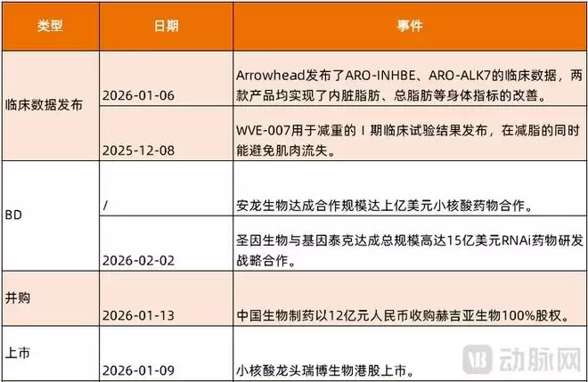 图1. 近期小核酸领域的重磅事件(资料来源:动脉网整理)