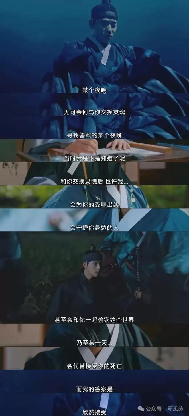 这一刻他们并不是在扮演彼此,而是成为彼此——成为恩祖的大君正式化身盗贼洪吉童,他用她的方式在最前线战斗。