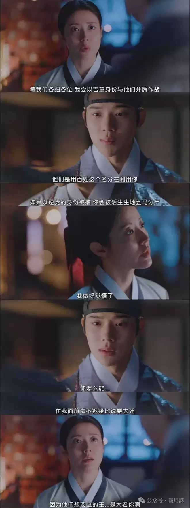 两个人正式摊牌谈谋反这一段我认为是比告白更心动的场面,这里更能表达恩祖的真心,她充分认可他这个人,如果是大君登上王位,那么她自己被利用、赴死也甘愿,恩祖对大君的情感走向以忠为爱。