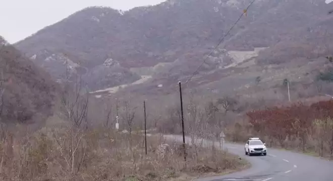 镜头掠过层叠起伏的苍茫群山,枯黄落叶静静铺满蜿蜒土路,一辆素白小车缓缓驶入画面中央,瞬间拉近了观众与乡土世界的距离。