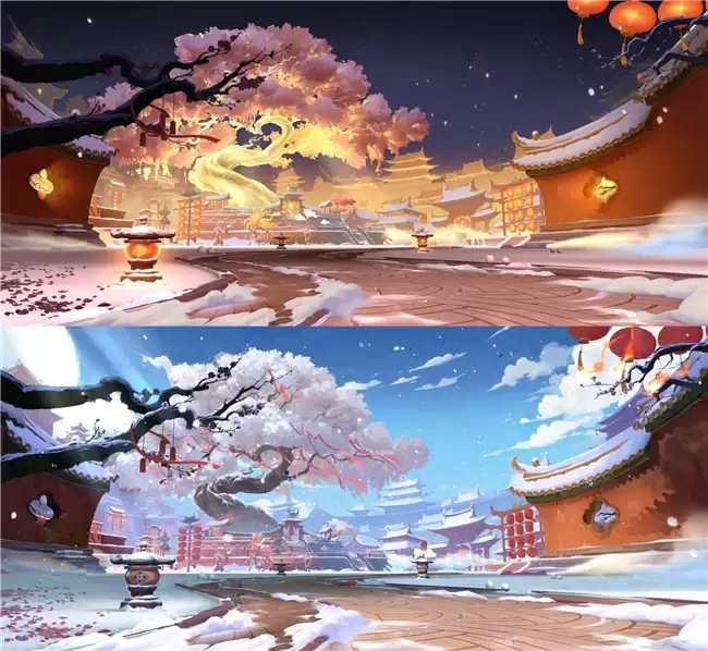 这种对传统美学的数字化重构,也延伸到了更为宏观的动态视觉表现中。在交互展示场景的设计上,引入了白天与黑夜的时间变换系统,并在场景转场中巧妙植入故宫红墙、龙梅映雪等经典意象。