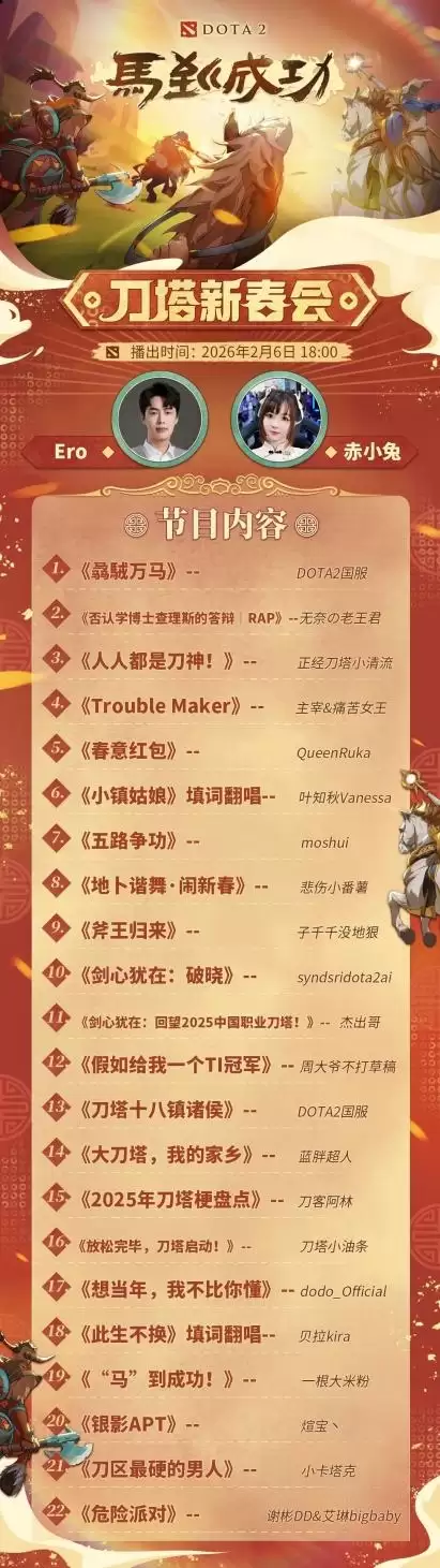 就在怪物猎人联动活动即将落幕的同时,另一场属于所有刀友的狂欢——2026刀塔新春会,也在今日(2月6日)18:00准时拉开了帷幕。这场由“Zynoo”、“赛睿”等知名品牌赞助播出的新春盛会,不仅汇聚了刀圈内外的众多明星与大咖,更准备了丰富多彩的节目与互动环节,旨在让每一位观众都能感受到刀塔大家庭的温暖与欢乐。