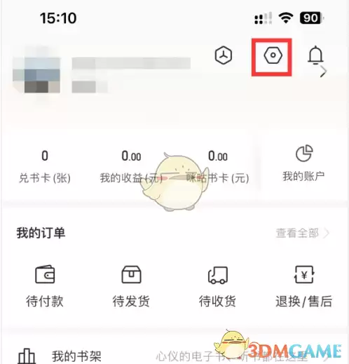 2、进入我的界面后,找到并点击右上角的"设置"图标。