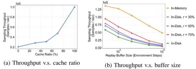 图 11 RLinf-USER 的 Buffer 在不同配置下的吞吐量性能测试,平衡了容量与效率