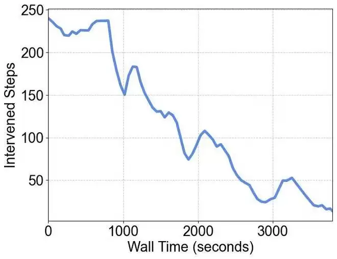 图 7 USER 框架使用 HG-DAgger 算法微调 PI0 模型。人工干预次数显著下降,成功率从 45%->80%