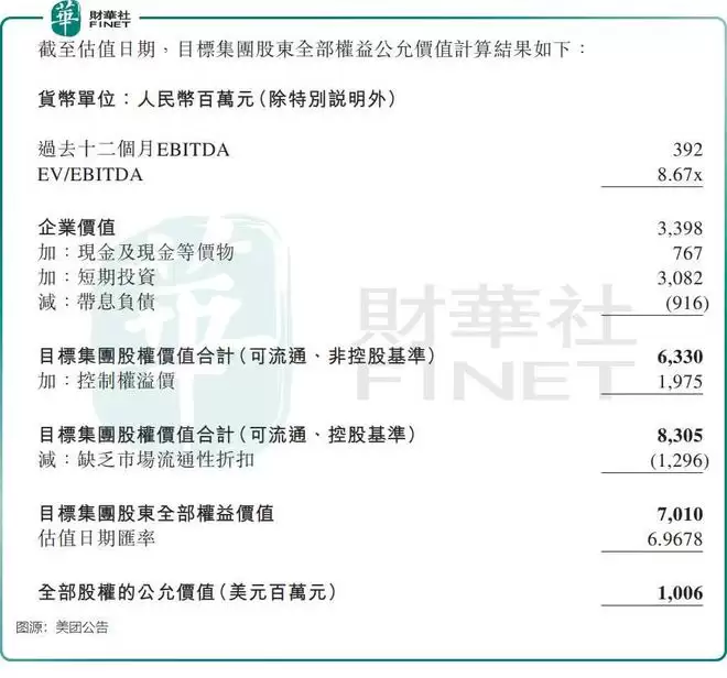 根据美团公告披露,独立估值师对目标集团(即叮咚买菜海外业务实体除外)股东全部权益的公允价值评估约为10.06亿美元,但美团最终给出的初始交易价仅为7.17亿美元,折价幅度接近30%。但对价较2月4日收盘市值6.9亿美元溢价仅3.9%,属小幅溢价。
