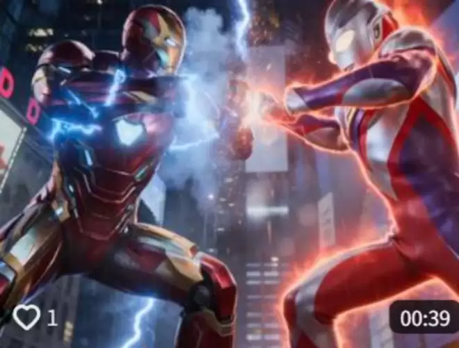 Seedance生成的是视频而非静态图像,其对版权内容的“复现度”更高,侵权证据更加直观。比如下图就是抖音平台上,利用Seedance生成的迪迦奥特曼对战钢铁侠视频。